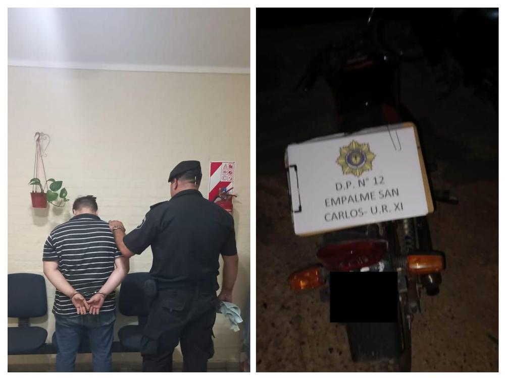 En la noche del día sábado, personal policial del Destacamento Policial N°12 de Empalme San Carlos que realizaba patrullajes preventivos por su jurisdicción, observó circular por la Ruta Pcial N° 70 una motocicleta sin luces, la cual evadió el control policial y se dio a la fuga ante las reiteradas voces de alto.